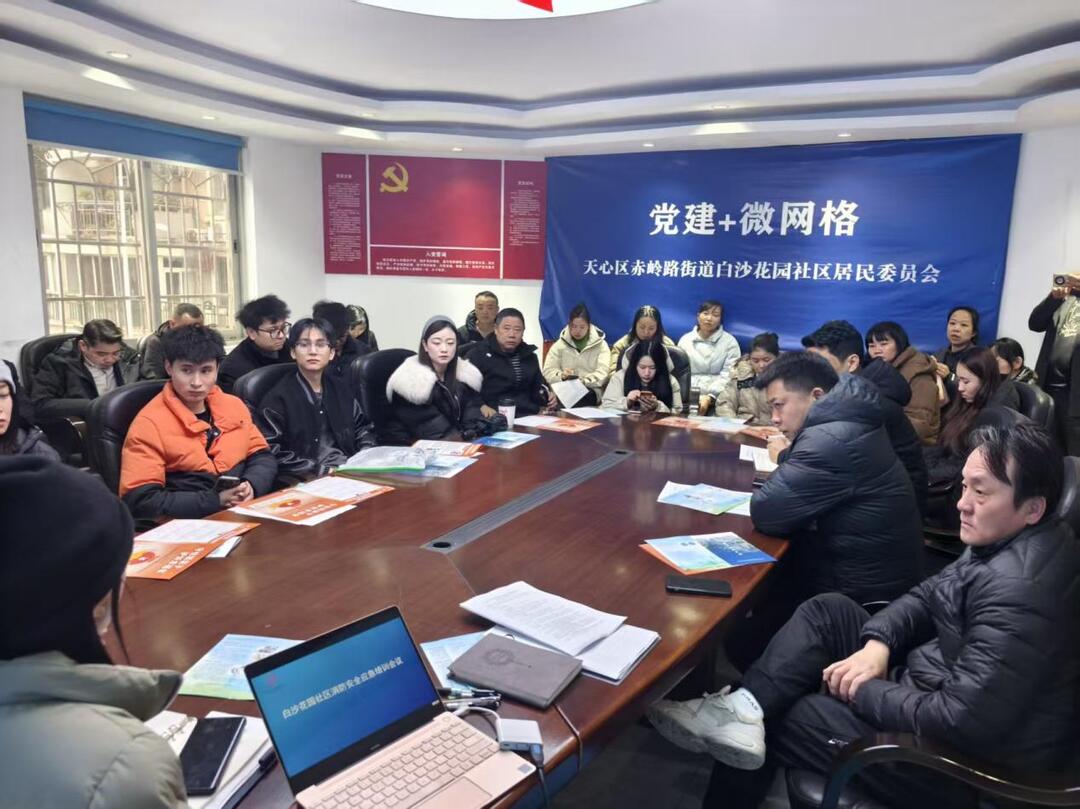 华声在线1月5日讯(通讯员 彭彩凤)为切实做好岁末年初消防安全工作,防范低温季节用火用电高峰带来的安全风险,2026年1月4日下午,天心区赤岭路街道白沙花园社区积极响应上级部门号召召开冬季消防安全“敲门行动”再部署再动员暨消防安全培训会议,吹响了新一轮消防安全攻坚行动的号角。社区精心组织,邀请辖区内物业公司负责人、重点单位安全责任人及社区网格员、楼栋长等共计六十余人参会,形成多方联动、齐抓共管的良好局面。