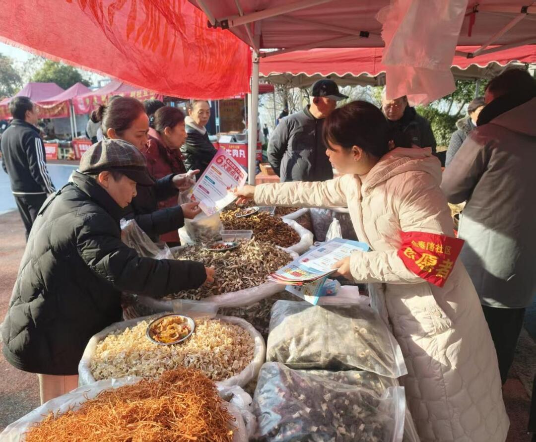 年味浓处,安全为先。针对市集上琳琅满目的农家熏腊、散装酱料及生鲜食材,社区将食品安全科普融入市集氛围。现场设立咨询台,志愿者同步发放宣传手册,严格提醒居民查验生产日期、保质期,确保食材来源可溯。“听了讲解才知道怎么看肉制品合不合格,这下买得更放心了!”一位居民说道。通过“监管+服务”模式,市集不仅有“烟火气”,更让居民买得安心、吃得放心。