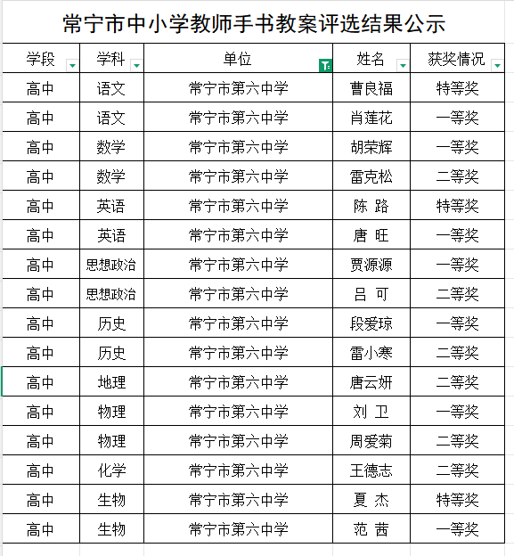 自活动启动以来,常宁六中高度重视,积极动员,精心组织教师参与。教师们热情响应,认真备赛,将日常教学中的思考、实践与创新凝练于笔端,呈现出一份份书写工整、设计精良、反思深刻的教案作品,充分展现了该校教师严谨治学、精益求精的专业态度与扎实的教学功底。在此次比赛中,常宁六中参赛教师凭借出色的表现脱颖而出,共有16位教师获奖,其中有3位教师荣获特等奖。