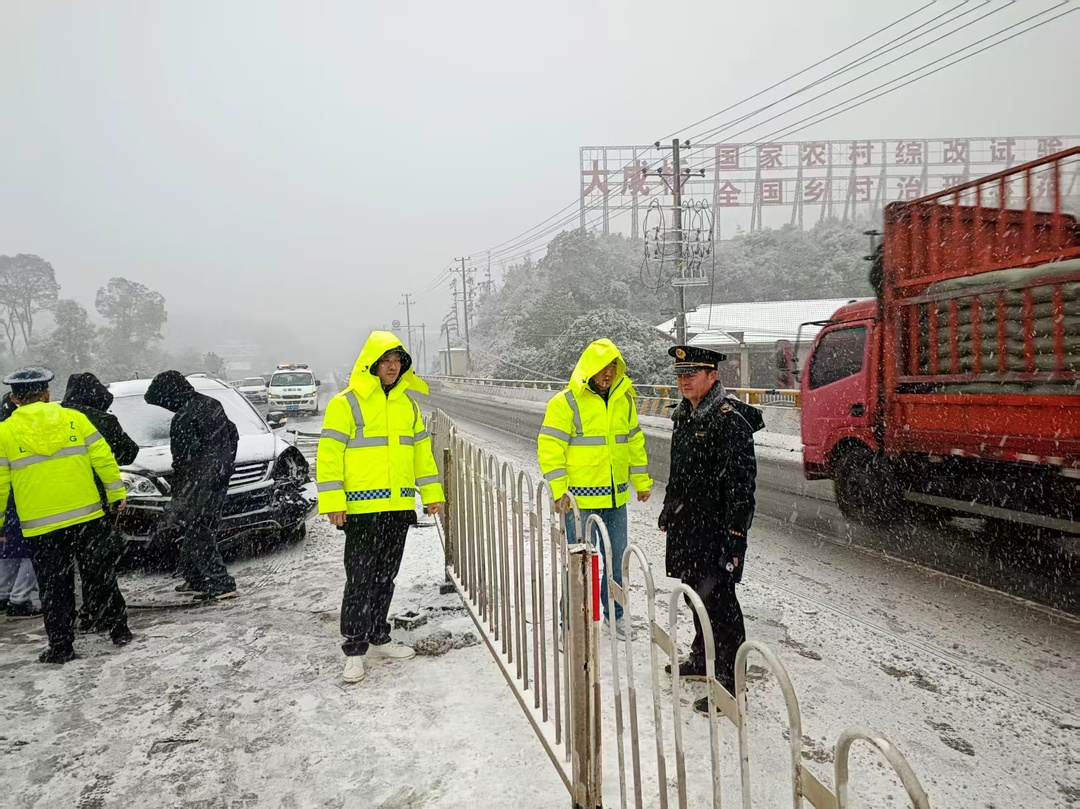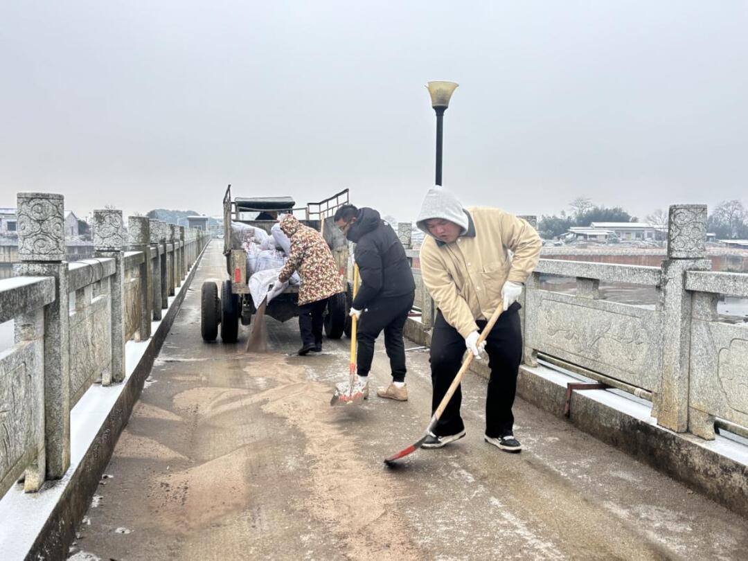 巡查人员始终坚持一线。镇领导带队,对主干道路、桥梁、急弯陡坡等重点路段开展拉网式巡查,实时掌握路况变化。一旦发现路面结冰、通行受阻,第一时间组织人员撒布融雪剂、清理积冰,并在危险区域设置警示标志,提醒过往车辆和行人谨慎通行。
