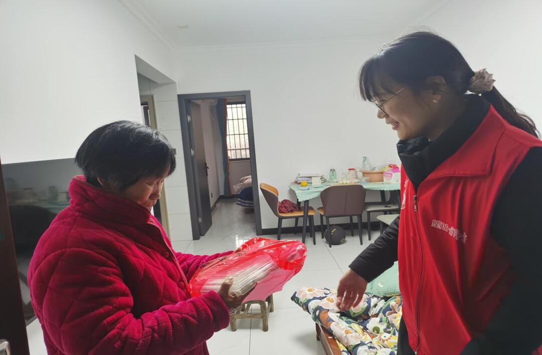 活动尾声,社区“送暖小分队”带着包好的饺子一起上门慰问独居老人。其中一位独居老人姚奶奶接过饺子,深情说道:“你们总惦记着我,这饺子暖到了心坎里。”一句朴实话语,道出社区“不是亲人胜似亲人”的深厚情谊。