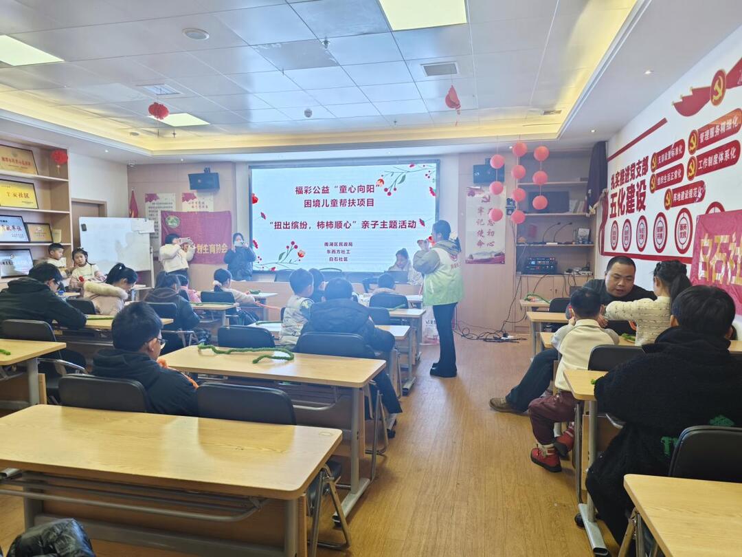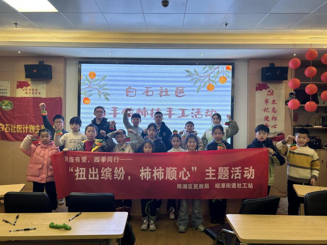 华声在线2月6日讯(通讯员 谢婷 胡馨月) 2026年2月5日,正值农历腊月廿一,小年将至。为弘扬中华优秀传统文化,丰富社区儿童假期生活,在雨湖区民政局的指导下,在福彩资金的支持下,昭潭街道社工站在白石社区大会议室成功举办了“童心向阳”困境儿童帮扶项目之“扭出缤纷,柿柿顺心”小年主题亲子手工活动。20名社区儿童欢聚一堂,用手中五彩斑斓的扭扭棒,亲手制作寓意吉祥的柿子挂件,在充满乐趣的动手实践中迎接新春的到来,感受浓浓的节日温情与传统文化的魅力。