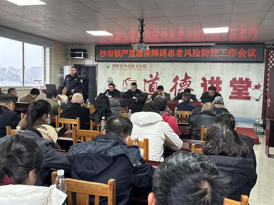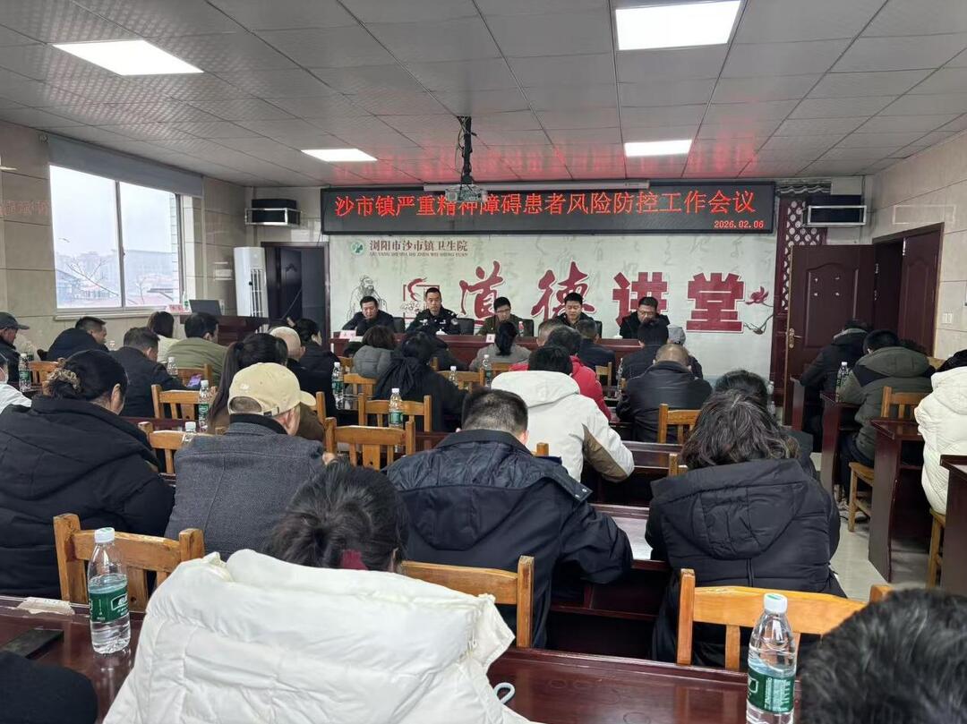 华声在线2月9日讯(通讯员 何彩霞)为切实规范严重精神障碍患者健康管理工作,织密民生保障与社会安全防护网,2月6日上午,沙市镇在卫生院公卫楼6楼会议室召开严重精神障碍患者健康管理监管工作调度会。镇相关领导、各职能部门负责人、村社工作人员、医护人员、辅警及患者监护人代表等齐聚一堂,共商管控良策、共筑安全防线,会议由沙市卫生院院长刘辉主持。
