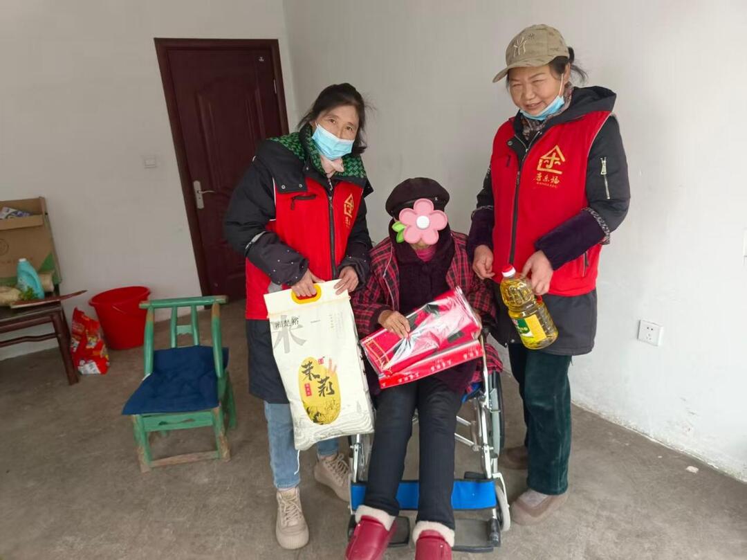 ▲志愿者入户慰问,送上新春礼包并进行暖心交流