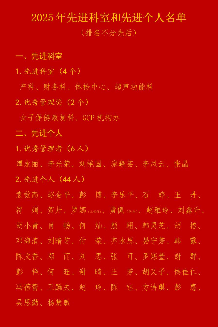 最后,院党总支副书记、院长陈瑜致闭幕词,她提出:发展总是与挑战同行,机遇常在变革中孕育。我们要接过发展的接力棒,要紧紧围绕妇女儿童全生命周期的健康需要,跑出妇幼健康服务的“加速度”,激发科研创新的“活跃度”,提升群众满意的“温暖度”,让务实重干、狠抓落实成为全院最鲜明的底色,共同把2026年妇幼健康的新篇章写在实处、写在人心。