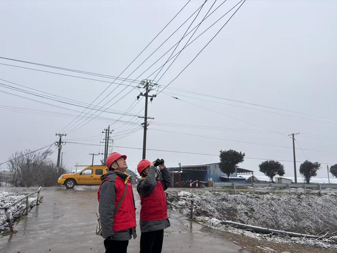 晨雪初霁,寒意未消。城头山供电所服务队队员张业军、曹清峰顶风冒雪、徒步前行,重点对10千伏乔张线杆塔、导线、绝缘子的覆雪结冰情况进行细致排查,并利用专业仪器监测设备运行状态,精准掌握设备运行数据。队员们逐线、逐塔、逐设备开展拉网式隐患排查,巡检范围覆盖主干线路、分支线路、公用配变及用户专变,做到不留死角、不漏隐患,确保设备异常早发现、早处置、早消除,全力将低温天气可能引发的线路故障风险消除在萌芽状态。
