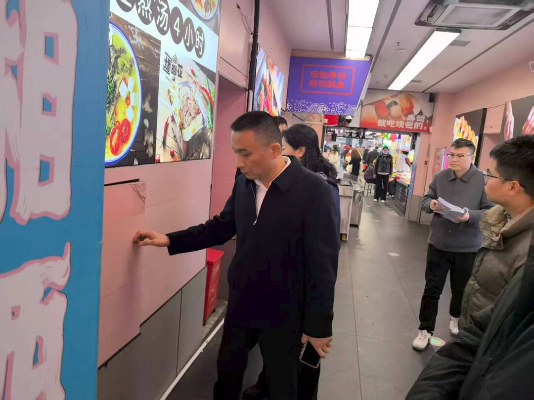 庙街美食城地处五一广场西北角,是开福区商贸功能圈的前沿阵地,汇聚众多餐饮商户,节前人员流动大、用火用电用气频繁,是安全生产监管的重点区域。检查中,王开文书记直奔现场,对美食城内消防栓配备及完好情况、安全逃生通道是否畅通进行逐一核查,同时深入各商户经营区域,细致检查电器设备运行、电路线路敷设、储藏室物品存放等消防安全关键环节,全面排查各类安全隐患,做到不留死角、不漏盲区。