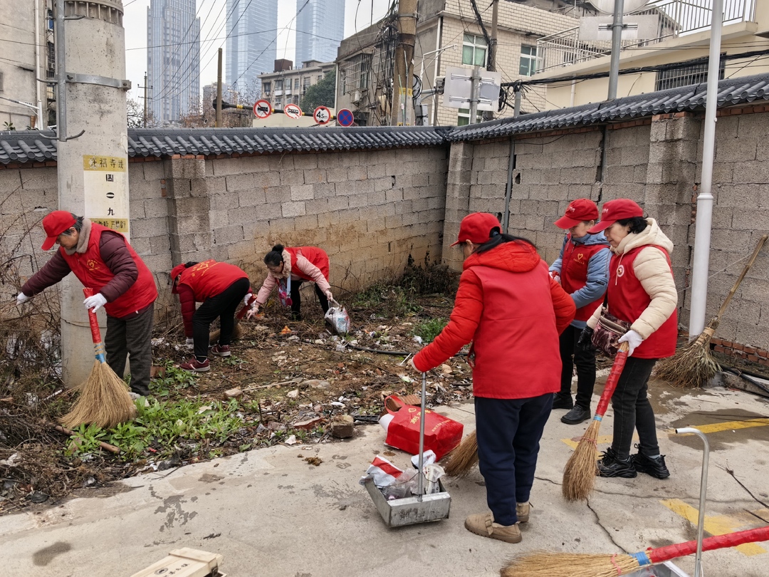 华声在线2月11日讯(通讯员 杨柳)为营造整洁优美、欢乐祥和的节日环境,2月11日,新河街道幸福桥社区组织社区党员、志愿者以及清扫员共同开展“环境人人参与 美好生活共同缔造”迎新春卫生大清扫,重点对社区停车场沿线、老旧小区围墙周边等卫生死角进行彻底清理。