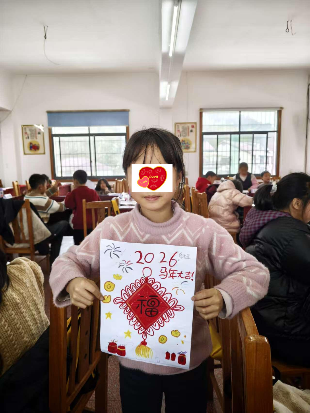 2月4日安排“阅读深化与心理关怀”,上午推进阅读并鼓励分享,下午通过绘画、情景对话等方式帮助孩子认识情绪、学习减压。一名孩子展示手绘的“福”字中国结,充满自豪。2月5日注重“学业支持与社交培养”,上午集中作业辅导,下午开展朋辈合作游戏,锻炼沟通与协作能力。2月6日以“学业总结与活力收官”为主题,上午进行学习规划指导,下午以健康体育课愉快结营。