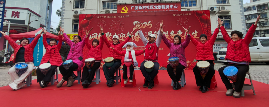 活动现场精彩纷呈,热闹非凡,居民群众身穿大红袄,系着红围巾,红红火火欢聚一堂,锣鼓喧天辞旧岁,载歌载舞共同迎接2026年农历马年的到来!