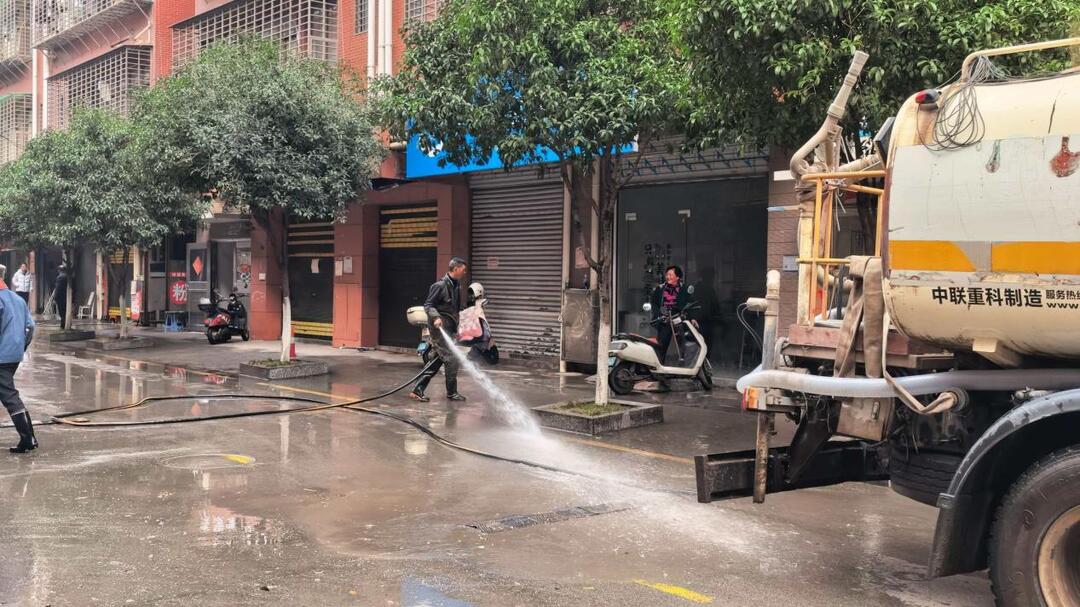 活动现场,大家热情高涨、分工明确、默契配合,一派热火朝天的忙碌景象。社区工作人员与自管会成员带头冲锋,志愿者和居民们积极响应,手持扫帚、簸箕、高压水枪、抹布等工具,全方位开展卫生清理工作。针对小区地面的顽固污渍、灰尘泥土,工作人员特意准备了高压水枪,对路面进行全面冲洗。水流冲刷过的地面焕然一新,原本斑驳的路面变得干净整洁,空气中的尘土气息也被清新感取代。