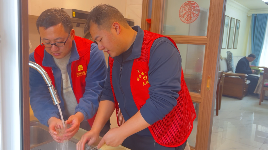 活动前期,郴县路社区及江山一品物业的党员志愿者,精细对接小区独居老人需求,精心制定菜单,优先选购新鲜、适合老年人口味的食材。活动当天,郴县路社区及江山一品物业的党员志愿者们来到老人家中,分工协作、有条不紊:有的细心择菜洗菜,有的熟练切配烹饪,有的主动为老人整理桌椅、布置温馨就餐环境。大家忙而不乱,欢声笑语间,一道道热气腾腾的家常菜陆续上桌,香气四溢。