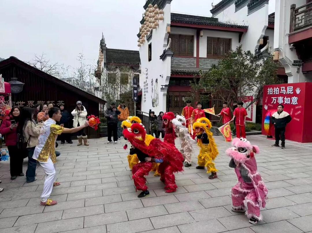 “锵锵锵!”锣鼓声由远及近,舞龙队伍自古渡口方向逶迤而来。经钱庄广场、过青创街区、入老街深处,复现着昔日茶商云集、日夜行脚的繁华图景。