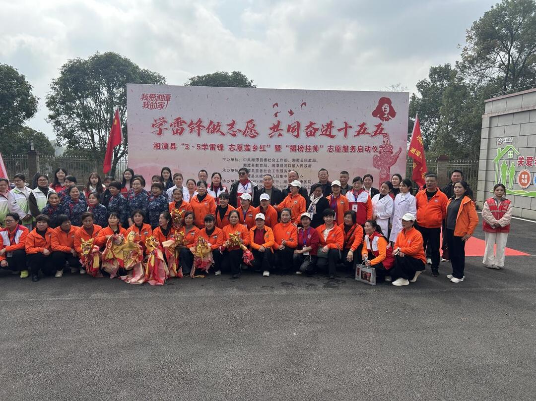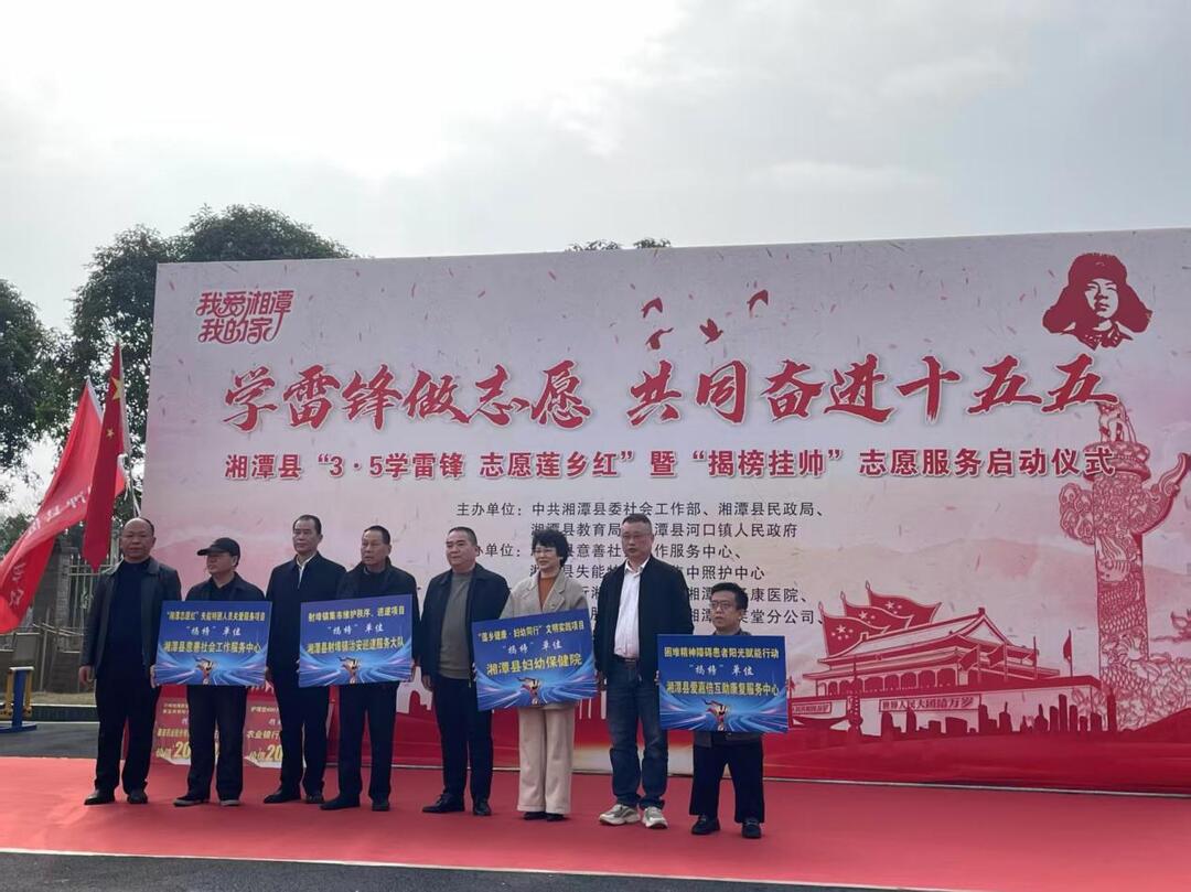 3月5日,湘潭县举办以“学雷锋 做志愿 共同奋进十五五”为主题的“3·5学雷锋 志愿莲乡红”暨“揭牌挂帅”志愿服务倡导行动,以务实举措健全志愿服务发展体系。在湘潭县失能困难人员集中照护中心,近十家公益社会组织和80余位志愿者共赴一场跨越63年的温暖约定,重温雷锋的故事,倡导时代新风正气,为“我爱湘潭我的家”群众性精神文明建设主题活动写下生动而热烈的注脚,为建设幸福莲乡注入志愿暖流。副县长马立宣布:“3·5雷锋 志愿莲乡红”暨“揭榜挂帅”志愿服务启动。