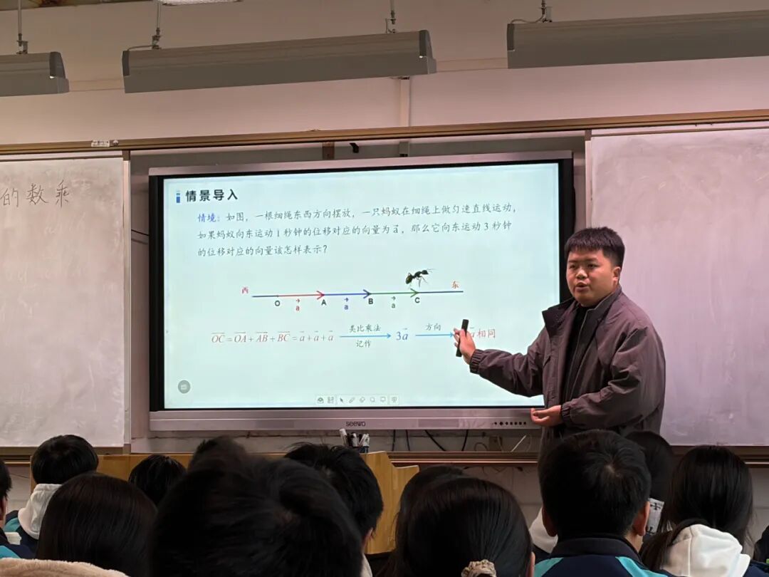 会议分为两个环节。首先,十一中青年教师李东霖呈现了一堂题为《平面向量的数乘运算》的常规研讨课。李老师教学设计新颖,教态自然,语言表达严谨精炼,课堂氛围积极活跃。他合理运用多媒体技术,有效优化教学过程,注重学生知识的自主生成与数学素养的培养,赢得了听课教师的一致好评。