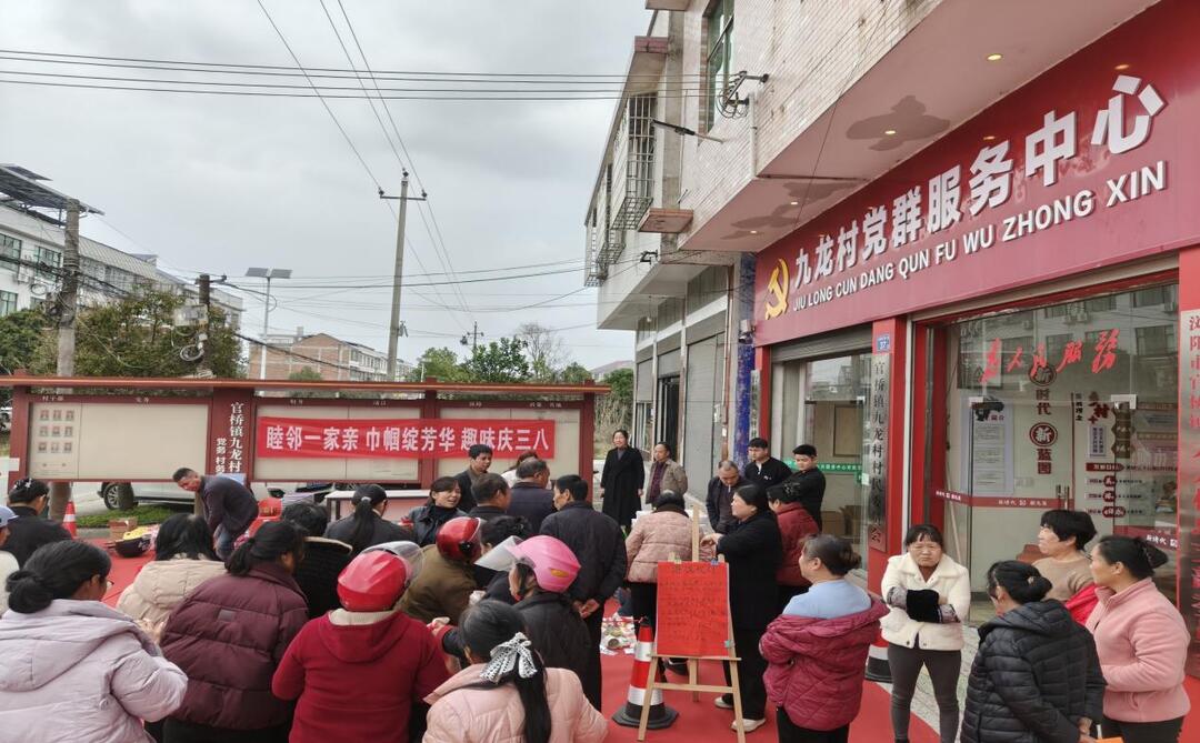 与此同时,官桥镇九龙村村部前坪人头攒动、欢声笑语不断。“睦邻一家亲 巾帼绽芳华”趣味庆三八活动正在火热进行中。全村18周岁以上女性村民踊跃参与,现场气氛热烈非凡。