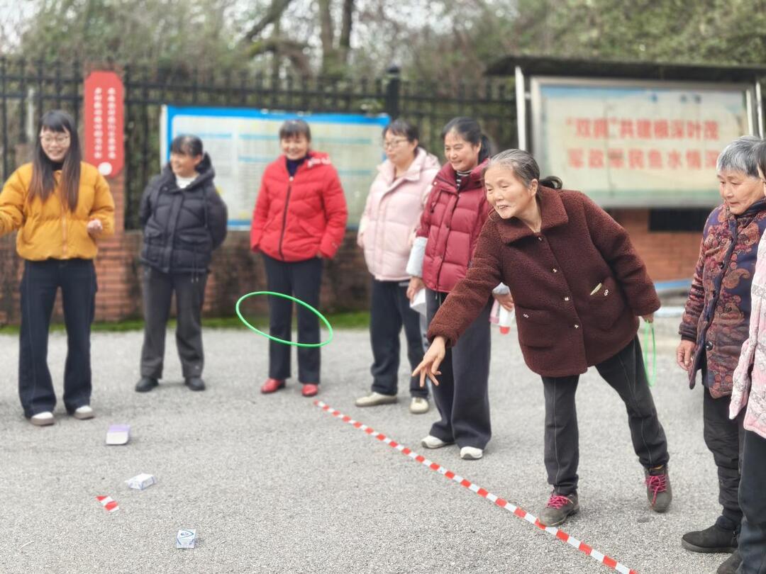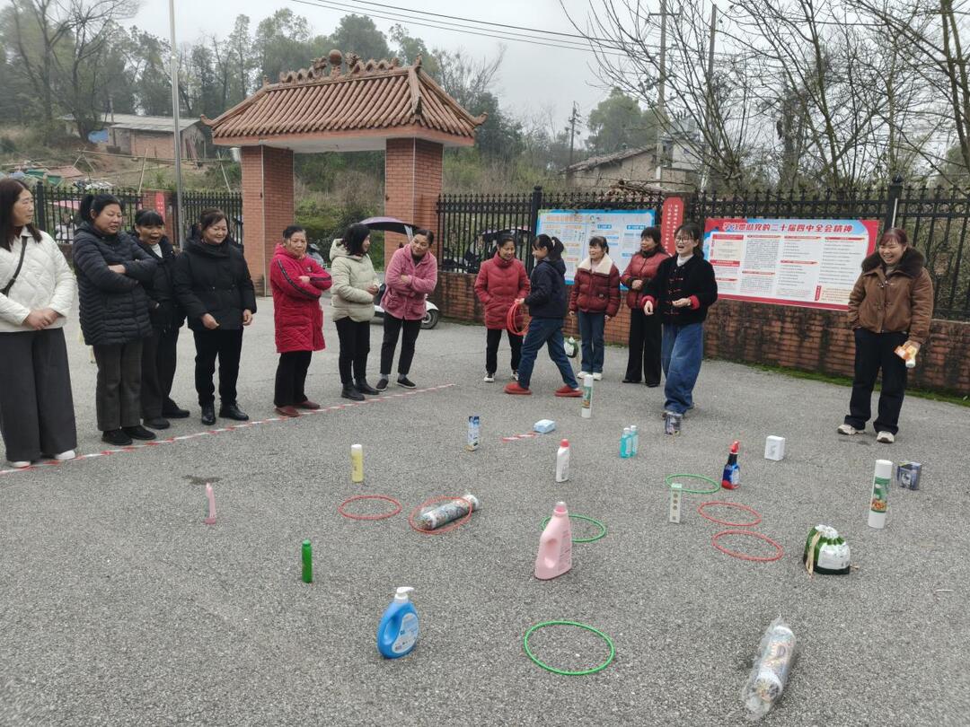 紧接着,备受期待的趣味套圈比赛正式拉开帷幕。活动现场,五颜六色的套圈和琳琅满目的奖品整齐排列,瞬间点燃了大家的参与热情。女同胞们个个精神抖擞,跃跃欲试。她们瞄准目标,或屏息凝神,或轻巧抛掷,小小的套圈在空中划出一道道优美的弧线。每当有人成功套中,现场便爆发出热烈的欢呼声和祝贺的掌声;偶尔失手,大家也互相鼓励,笑声不断。比赛过程既紧张激烈又妙趣横生,充分展现了万星村女性同胞们积极向上、活力四射的精神风貌。