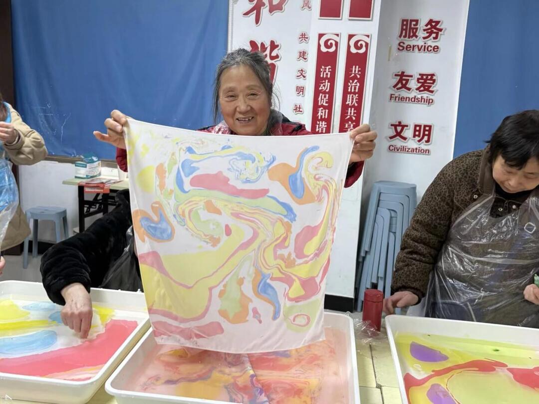 65岁的刘阿姨抚摸着亲手制作的丝巾,爱不释手:“活了这么大岁数,还是第一次知道水面上能画画,更没想到自己也能做出这么漂亮的丝巾!这个妇女节过得真有意义。”年轻妈妈小陈则表示:“平时工作带娃两头忙,今天静下心来玩水染色,感觉特别治愈。这条丝巾我要好好珍藏,这是送给自己最好的节日礼物。”