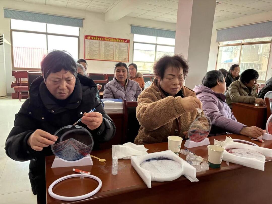 “看,我的这幅像不像夕阳下的金色海滩?”“我这个是春天的颜色,五彩斑斓的!”大家互相欣赏着彼此的作品,分享着创作过程中的心得与喜悦。现场气氛轻松而热烈,平日里忙于工作与家庭的女性朋友们,在这一刻放下了疲惫与忙碌,全身心投入到艺术的疗愈之中,感受着指尖流沙带来的宁静与美好。