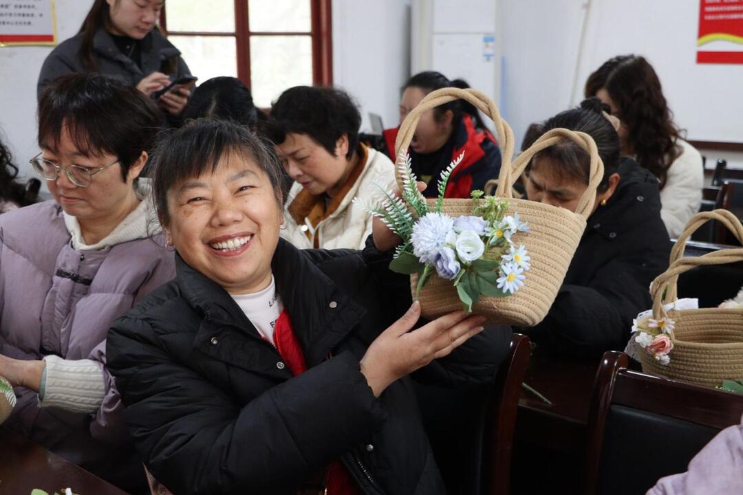 “这是我自己设计的第一款包,干花是春天的颜色,珍珠是女人的气质,我要背着它去踏青!”大家纷纷表示,要把这份亲手创造的春意带回家,装点生活,也把节日的快乐和社区的温暖传递给家人。