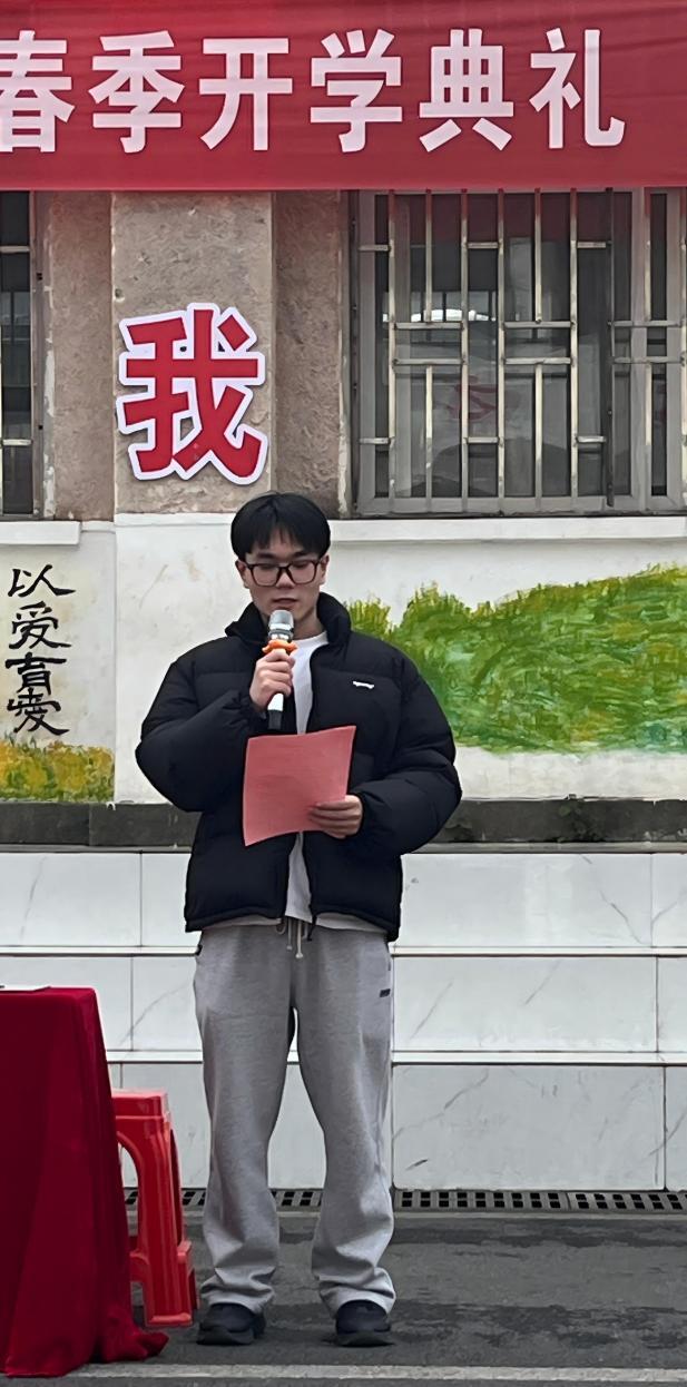 “勤学善思、奋勇拼搏”。六年级学生代表邝应翔发言,言语间满是对校园生活的热爱,分享了自己的学习心得与成长感悟,更立下了新学期的奋斗目标。真挚的话语、坚定的信念,感染着在场的每一位同学,也激发了全体学子的昂扬斗志。