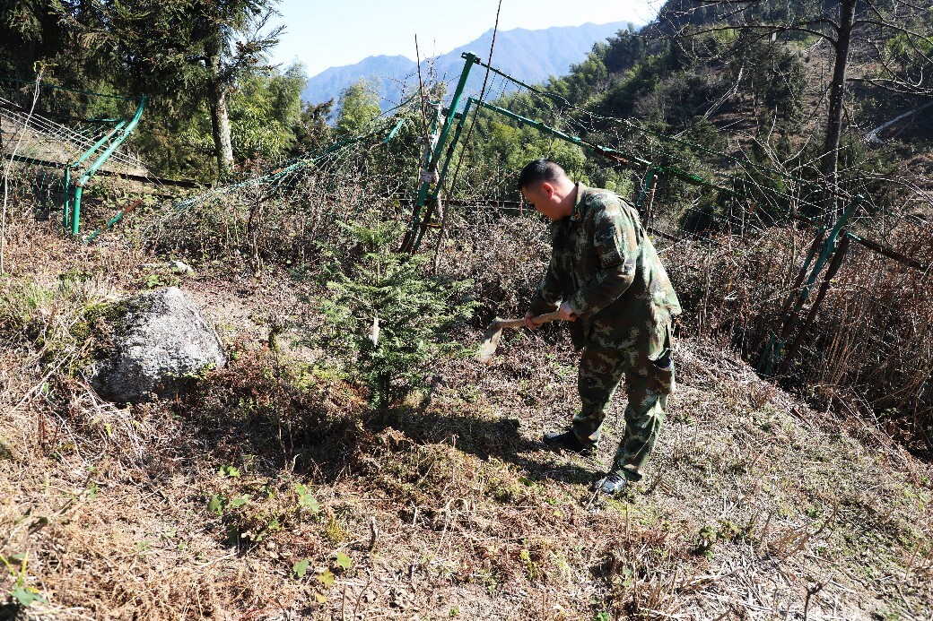 上午时分,新宁舜皇山七家岭的资源冷杉返迁基地内,一派热火朝天的劳动景象。尽管春寒料峭,但参与植树的干部职工们个个精神饱满、干劲十足。大家三五成组,分工协作,配合默契:有的挥锹铲土,有的扶苗填坑,有的踩实定植,每一个环节都一丝不苟。经过一上午的辛勤劳作,一株株人工繁育的资源冷杉幼苗在这片红军长征曾经过的山坡上迎风挺立,为初春的舜皇山注入了勃勃生机,也标志着又一批“植物活化石”成功实现野外回归。