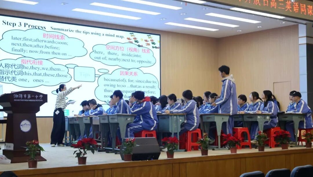 高三英语《逻辑衔接:七选五语篇解题路径》展示中,湘潭第一中学张雪映老师紧扣语篇逻辑,株洲市第二中学胡容老师则以任务驱动引导学生自主探究。高二英语《Life on a space station》由陈辉老师执教,课堂生动活泼,学生参与度高。高一英语《Telling Chinese Stories in English – The Spring Festival》由罗慧清老师执教,以项目式学习引导学生用英语讲好中国故事。评课环节,老师们聚焦语篇教学与核心素养培育,探讨了在英语教学中的创新实践。