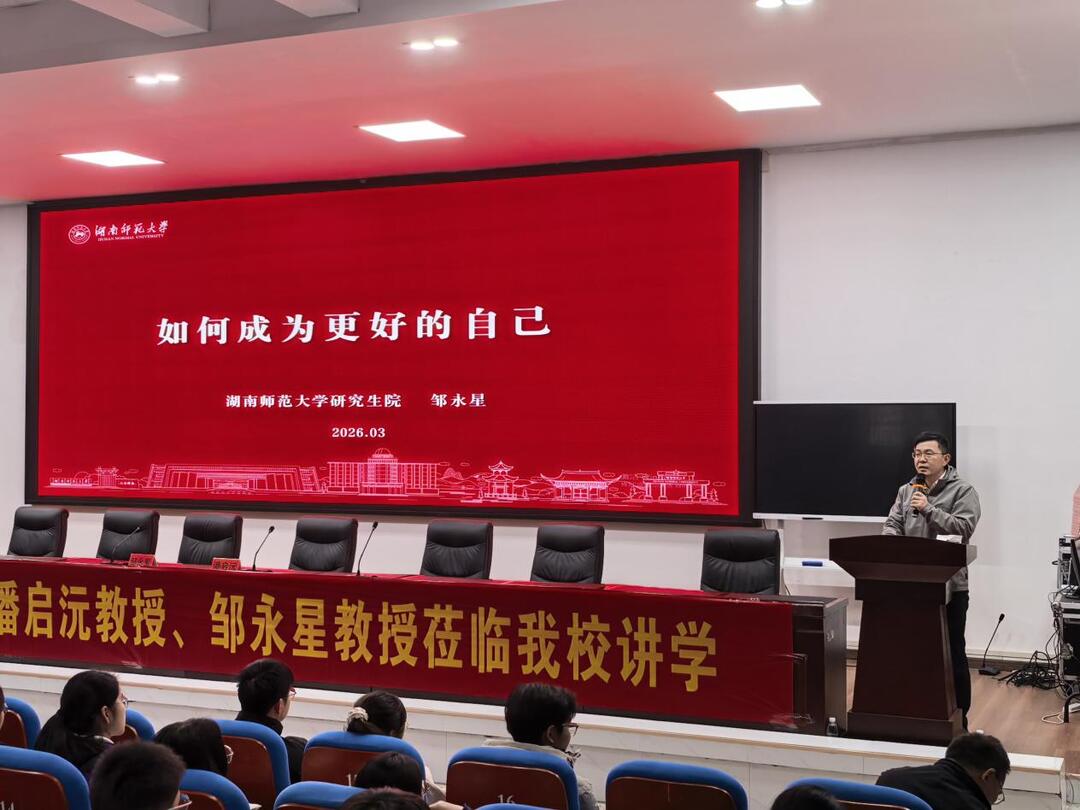 华声在线3月25日讯(通讯员 蒋崇钦 李宁)3月22日上午,双牌县第二中学在学校报告厅举办思政、学术专题讲座。湖南师范大学物理与电子科学学院副院长潘启沅教授、研究生院副院长邹永星博士分别以《物理学照亮世界》《如何成为更好的自己》为题作专题辅导。讲座由双牌县蒋崇钦高中物理名师工作室主持。双牌二中全体物理教师、240余名高一学子参加讲座。