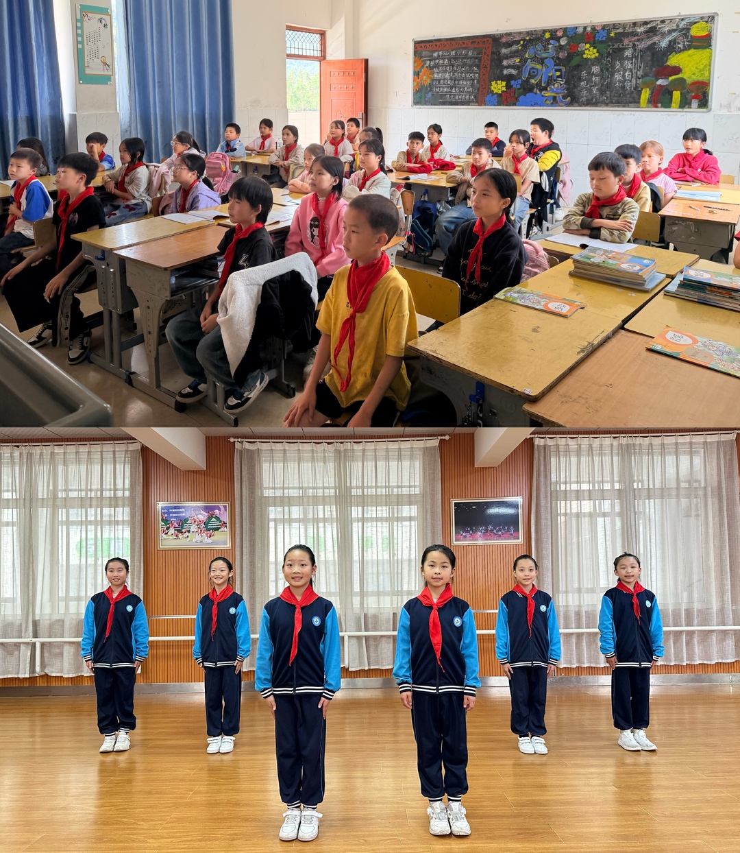 袁灿老师示范演唱要点,纠正节奏与发声。屏幕那端,孩子们挺胸抬头,目光坚定。“请全体起立!整理红领巾!让我们用最响亮、最坚定的声音,完整演唱队歌。”伴奏响起,屏幕两端师生同唱一首歌,激昂的旋律将相隔千里的心紧紧连在一起。平塘添富小学谭懿馨老师感慨:“云端课堂,为偏远地区的孩子打开了一扇通向外面世界、通向信仰的大门。”