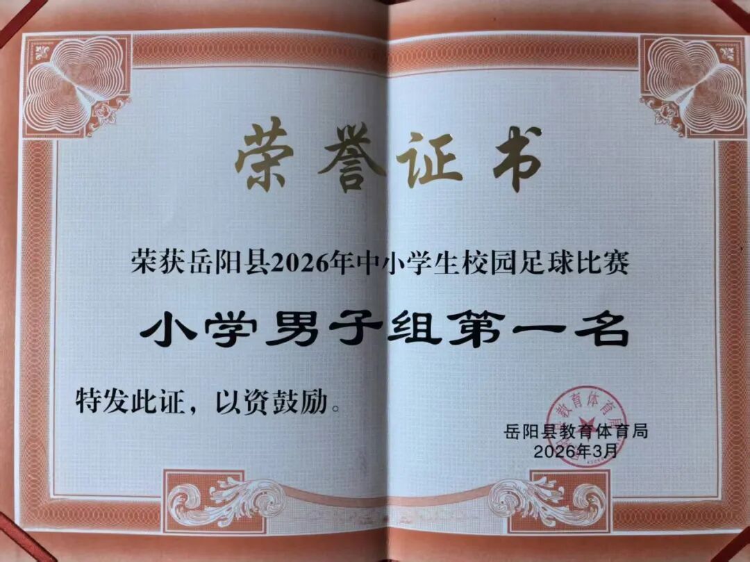 华声在线4月2日讯(通讯员 周慧明 佘娟丽)4月1日下午,在刚刚落幕的“绿茵逐梦强体魄,文体花开满校园”岳阳县2026年中小学生校园足球比赛中,该校男子足球队奋勇拼搏、再创辉煌,成功蝉联冠军!这是该校连续四年夺得该项赛事冠军,在此特向全校师生、家长及关心学校发展的社会各界人士报喜!