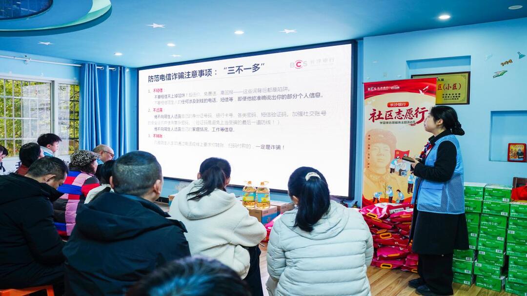 金融课堂护钱袋。针对老年人、青少年、新就业群体风险防范意识较弱的特点,长沙银行·快乐益家志愿者化身“金融宣传员”,把防诈课堂搬到社区、广场、物流园等地方。通过真实案例、通俗讲解、现场互动,揭露电信诈骗、非法集资、虚假理财的陷阱,手把手教群众识别风险、守护财产。“以前总担心被骗,现在听了讲解,心里踏实多了。”老年人的朴实话语,正是金融志愿服务最实在的成效。