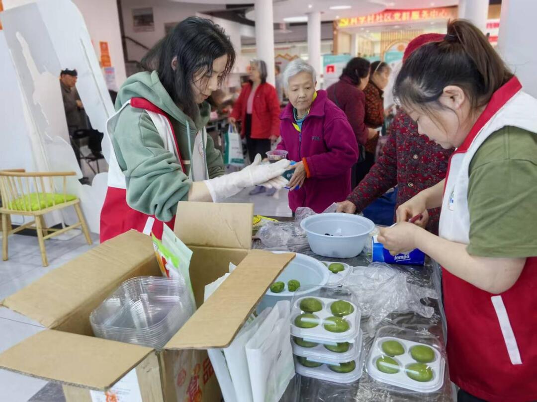 民俗体验区内节日气息浓郁,处处洋溢着春日温情。居民们佩戴精美民俗头饰打卡拍照,亲手制作软糯香甜的青团,细细品尝鲜香的地菜煮蛋,沉浸式体验三月三传统习俗,在动手实践中感受传统文化的深厚底蕴,共赴一场春日民俗之约。
