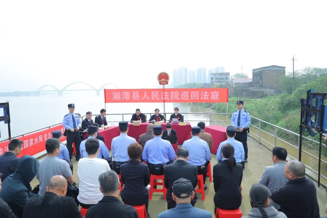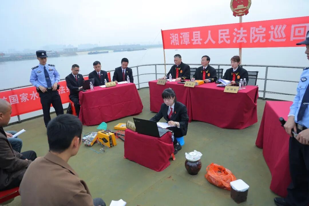 华声在线4月22日讯(通讯员 熊厚)为迎接第57个世界地球日,深入推进生态环境法典普法宣传,2026年4月17日上午9时,湘潭县人民法院环境资源审判庭将巡回审判法庭搬到了湘江之畔的渔政码头驳船上,依法公开审理一起非法捕捞水产品案,湘潭县人民法院党组书记、院长曾朝阳担任审判长,湘潭县人民检察院党组书记、检察长蒋九久出庭支持公诉,二十余名船主和沿江居民到庭旁听。