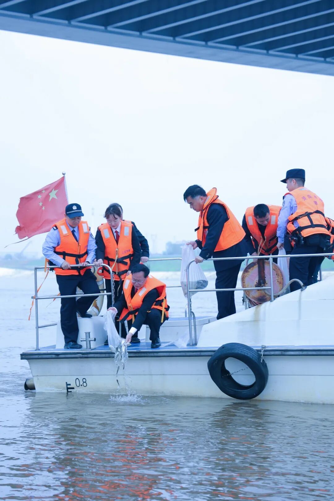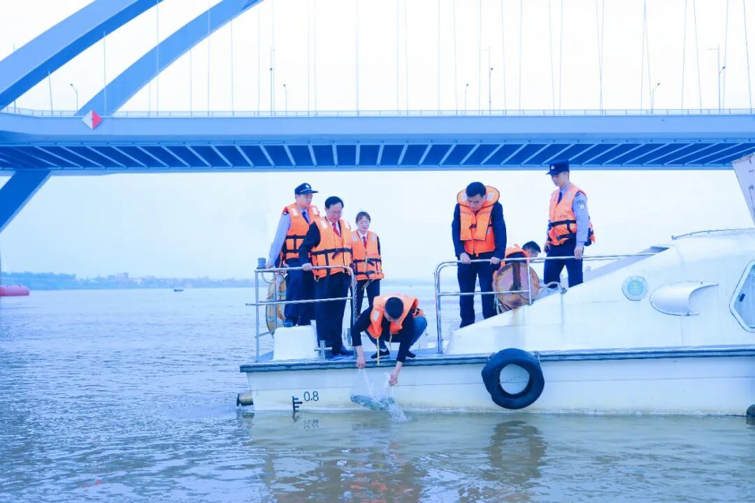 宣判后,一场更具意义的生态修复活动随即展开。在院长曾朝阳、检察长蒋九久及县农业农村局工作人员的现场监督下,三名被告人登上渔船,将由其共同出资购买的15000余尾鲢鱼、鳙鱼鱼苗缓缓投放至涓水河中。